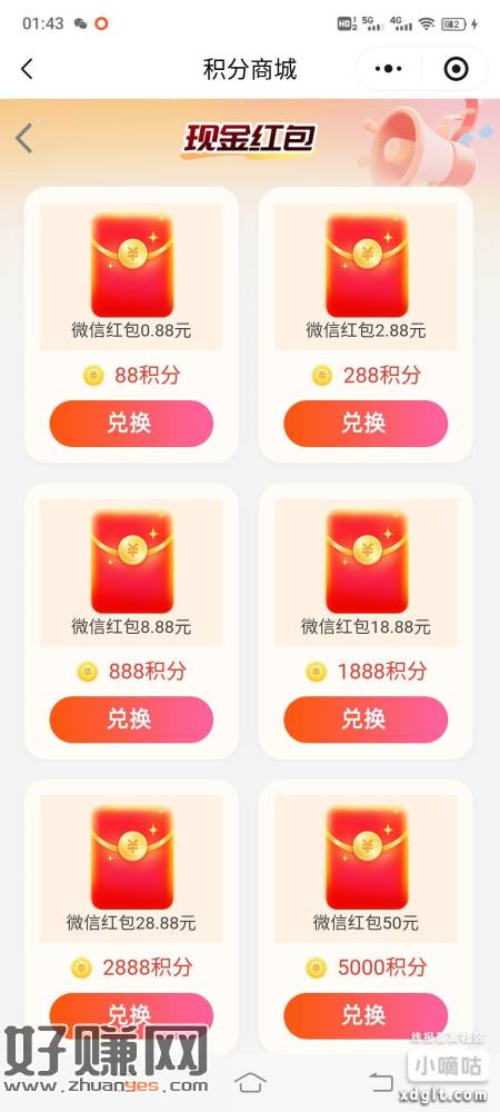 中间二积分乐园,有积分去换 0.88红包有货,2.88 8.88没有