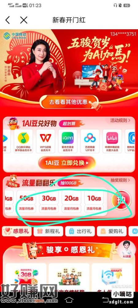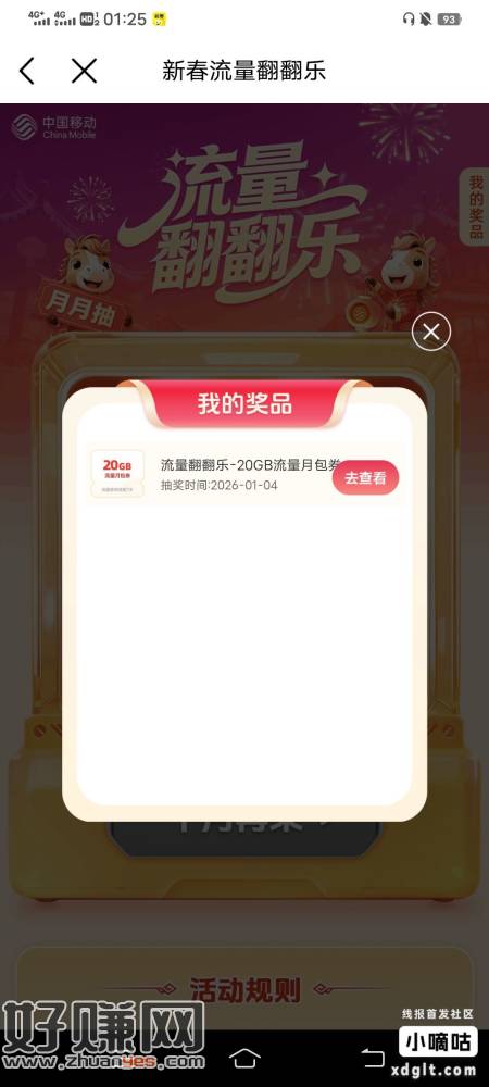 冲冲冲,移动首页全国活动抽最高100g流量,俺中20g