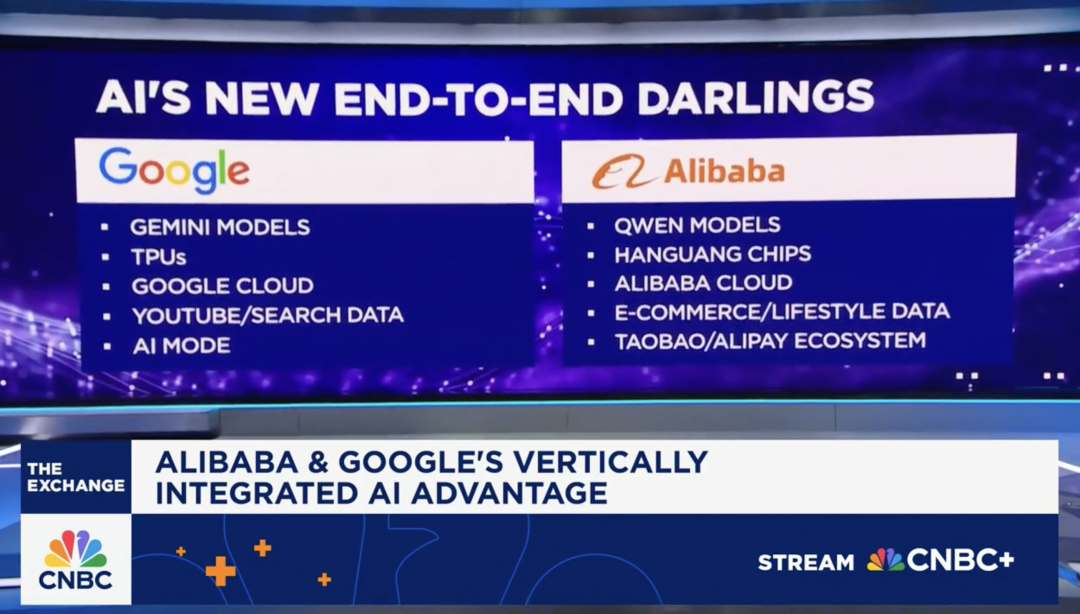 美国CNBC近期提出的“西谷东阿”概念,将阿里巴巴与谷歌置于同一观察维度,认为两家公司都展现出从底层芯片、云计算到上层应用的全栈能力。这种能力支撑了大模型的快速迭代,也为商业化落地提供了坚实基础。