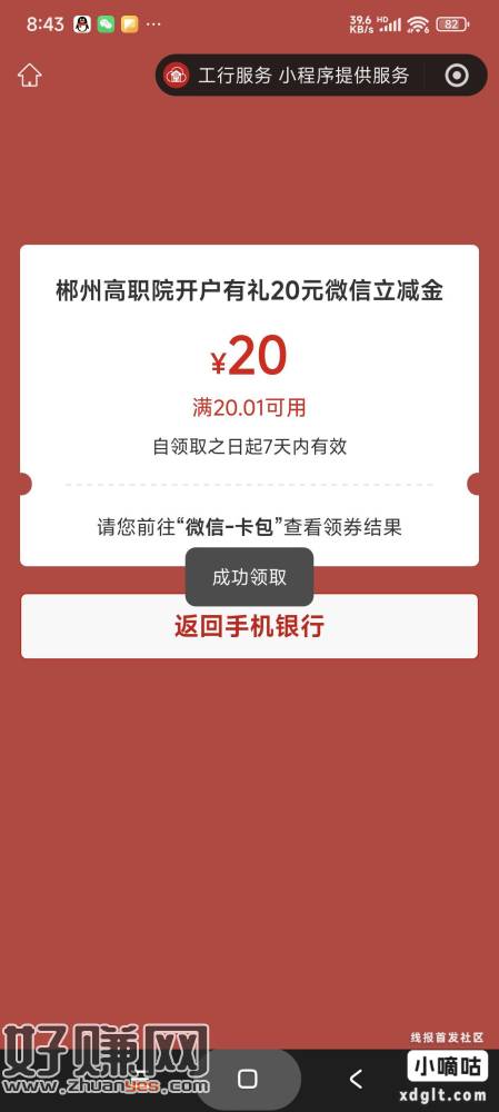 湖南郴州工行搜消费季 领20飞过去就能领,不限卡