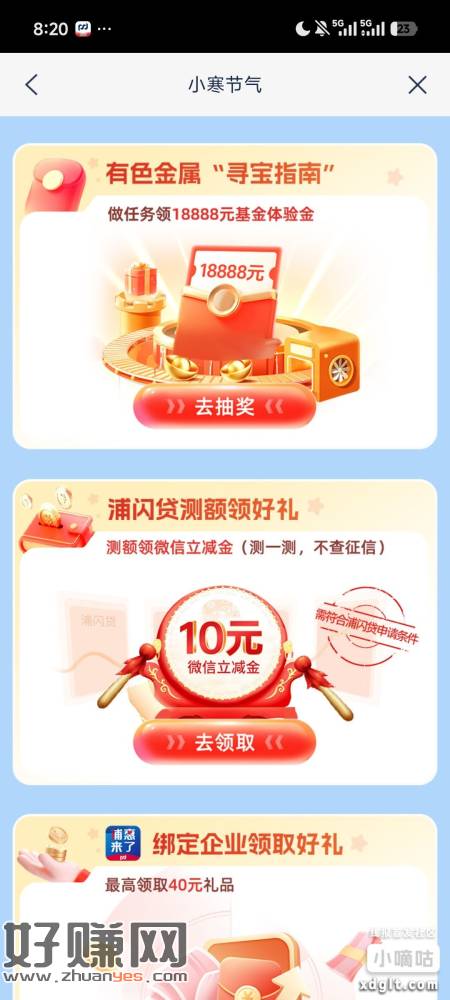 浦发银行,首页横幅内,多个活动,18888体验金,测额,10立减金,有企业还可以得40立减金