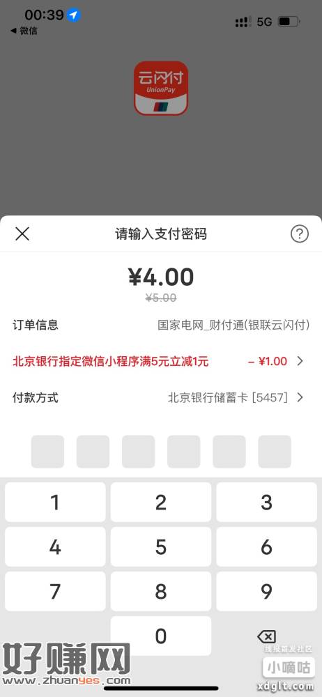 江西国网微信小程序交电费,使用云闪付转北京银行有30-5和5-1,其他地区自测