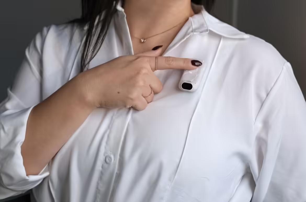 最引人注目的设计细节在于,它彻底摒弃了传统的显示屏,转而搭载了一个显眼的摄像头模组和若干实体按键。这种设计逻辑与 Humane AI Pin 等产品类似,旨在让用户从屏幕的“滚动浏览”中解脱出来。