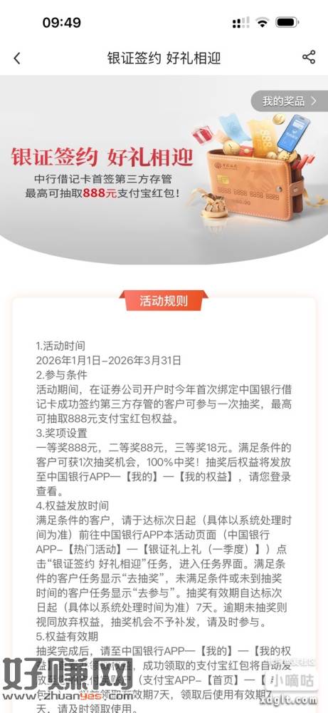 中行银证签约礼更新了,去年玩过中了188,今年18。二类电子卡签约存管也可以。