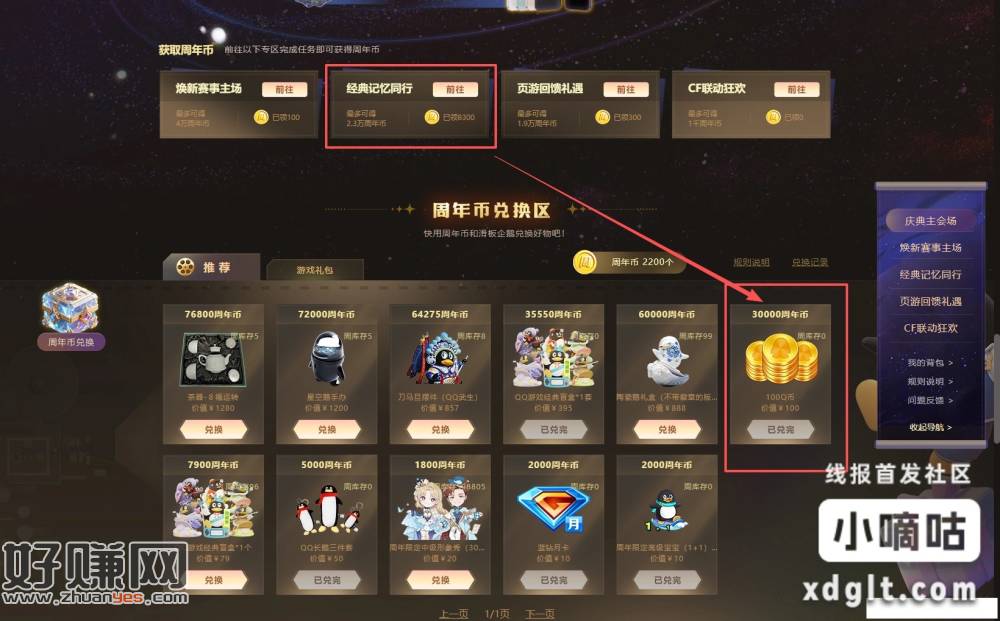 有耐心的也可以攒周年币 3 万周年币兑 100Q 币每周补货