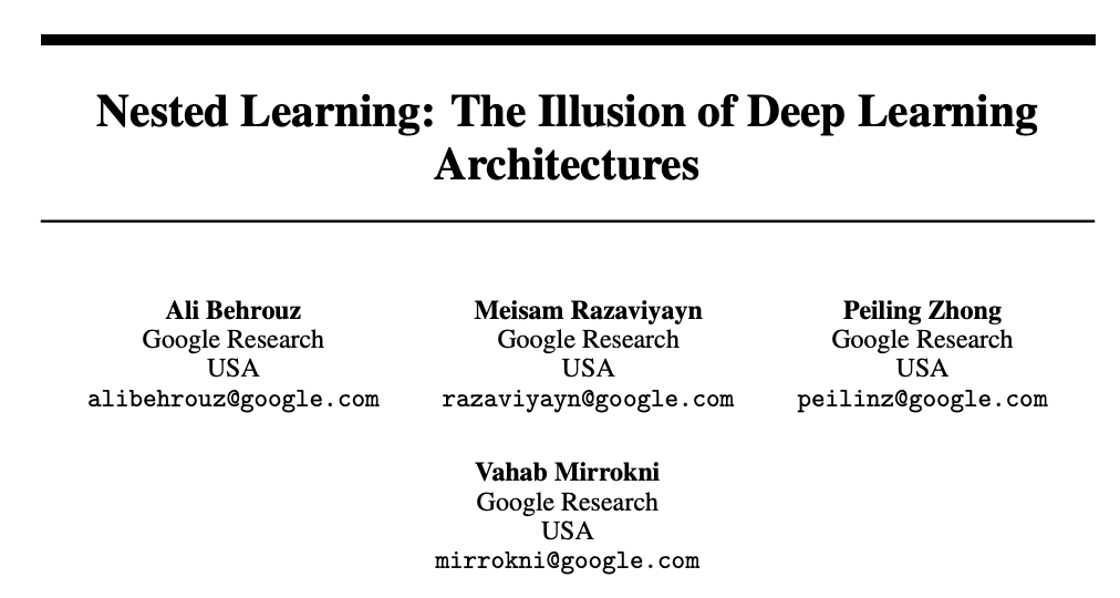 Nested Learning嵌套学习,给出了大语言模型灾难性遗忘这一问题的最新答案!