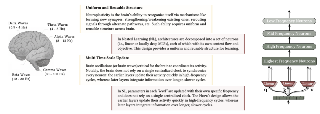 而嵌套学习NL则开辟了一条模仿人脑认知机制的新路径,灵感就源自于大脑的记忆工作原理。
