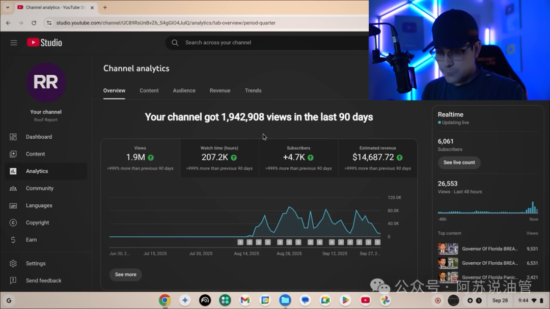 Roof Reports ,一个专攻佛罗里达州房地产市场的频道,频道创作者既不是大公司,也不是任何团队,博主一个人就搞定了全部流程。
