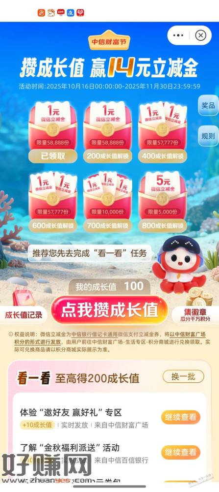中信立减金,随便点点5块钱。任务一点就可返回。