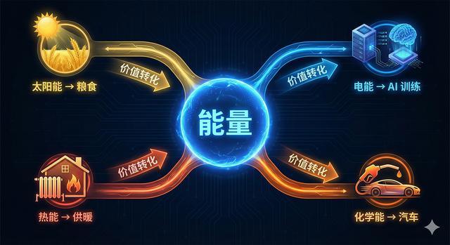 马斯克认为,所有商品和服务的价值,本质上都是“能量的转化”。粮食的生长需要太阳能,汽车的行驶需要化学能,AI的训练需要电能——能量是所有经济活动的底层基础