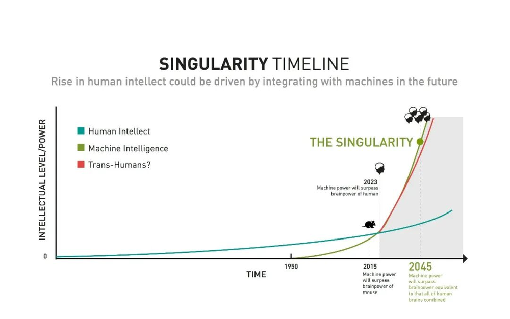 马斯克在访谈中,引用了雷·库兹韦尔的概念「奇点(Singularity)」。