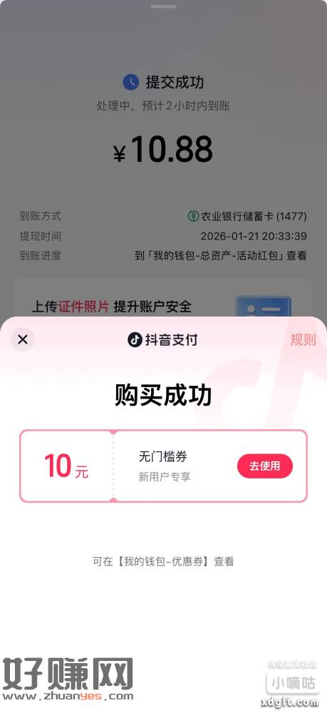 抖音小号都看下侧边有没有这个10.88加一张10元无门槛刚提了两个号,同实名也没事搞完再解绑实名