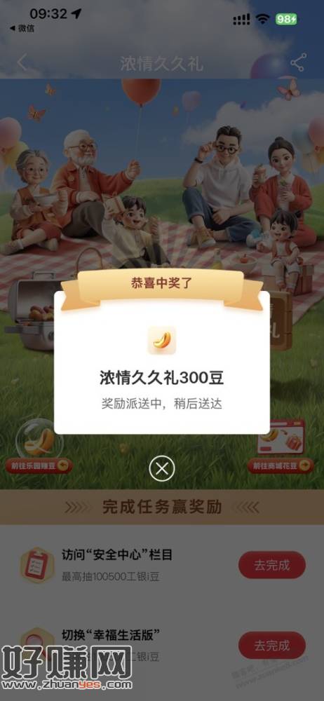 工行app搜:乐园,左下角【久久浓情】,有水,抽1000+300+300豆子