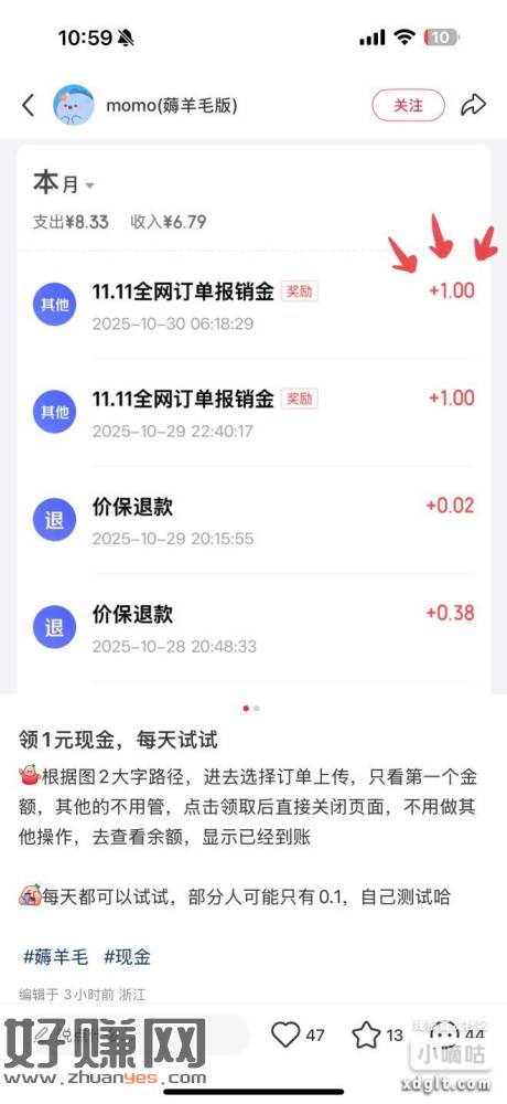 狗东或狗金融全网报销 搜(给我买单)进去啊今天又进账5米有嘀友和一些群友说领到1块 一天1块也不错啊