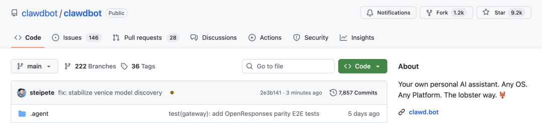 它是一个开源项目,在GitHub上,Clawdbot斩获近9.2k星,1.2k Fork。