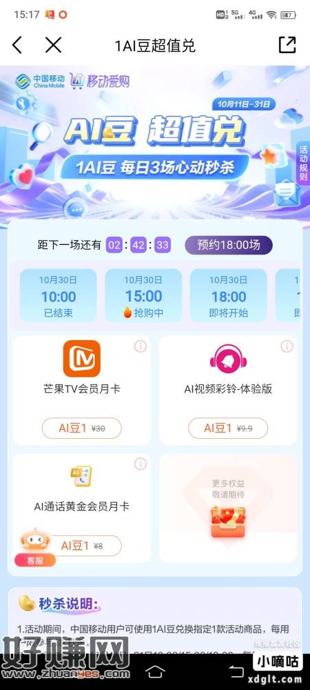 芒果月卡直充移动扫,本月没参加过一豆兑的去
