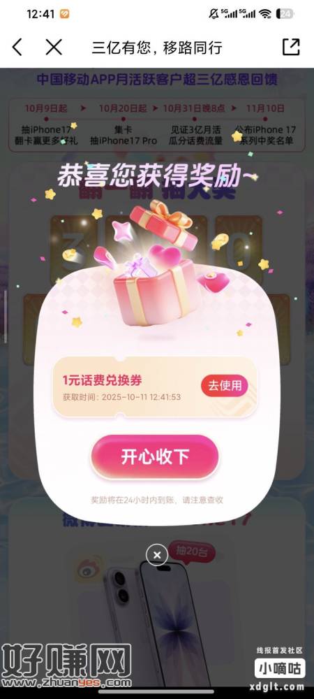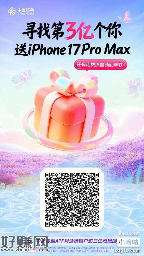 移动话费流量移动APP顶部,(互动送iPhone 17)没入口的扫图二刚中10GB和1话费