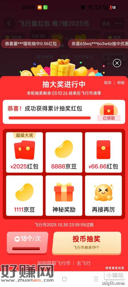 京东app-首页右侧浮窗红包待领-领奖励进入做浏览任务做个10多个就行-然后飞行领红包-攒够180个飞行币-左上角飞行币进入抽10次得5红包,