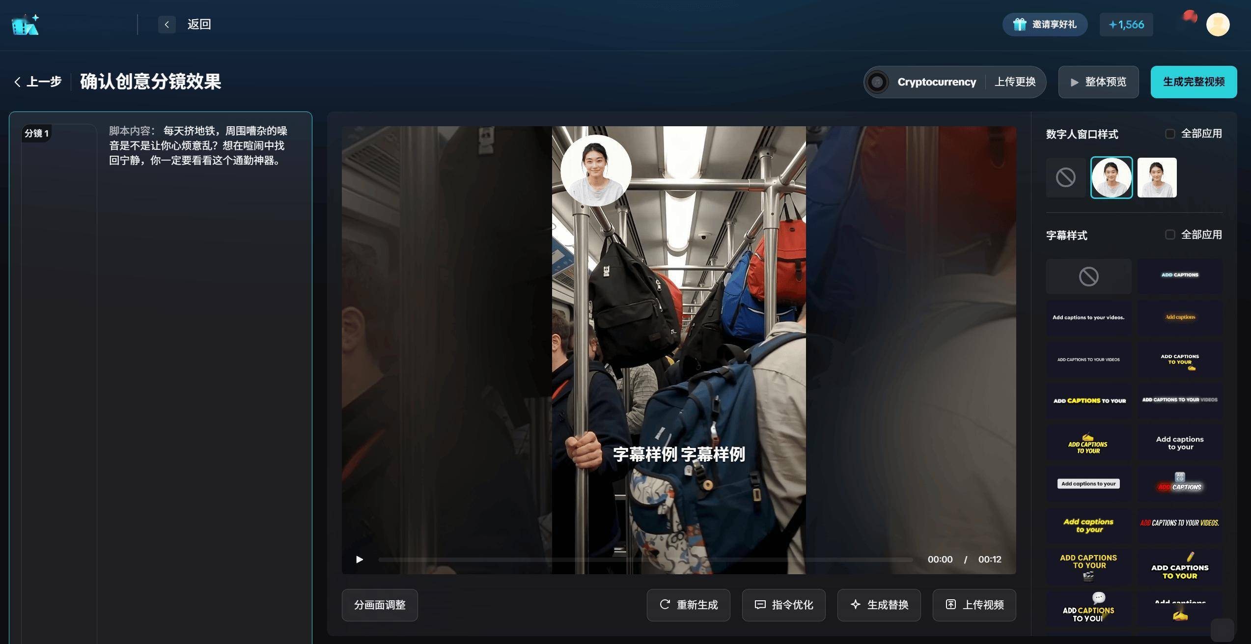 除了智能一键成片,我也对创意工坊和数字分身两大功能进行了体验。