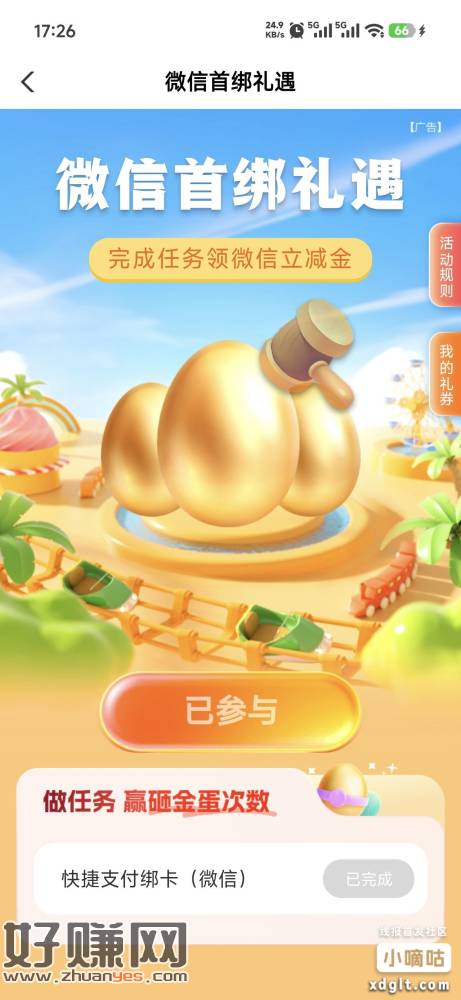 农深圳分行,先解绑微信里的农行卡,再做任务一健绑卡砸蛋拿下15微信立减金