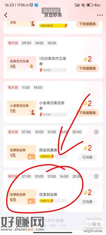 京东金融APP里面底部省钱,然后中部有一个。京东京豆秒杀进去拿这个5块的,然后去买基金,随便一只快进快出。