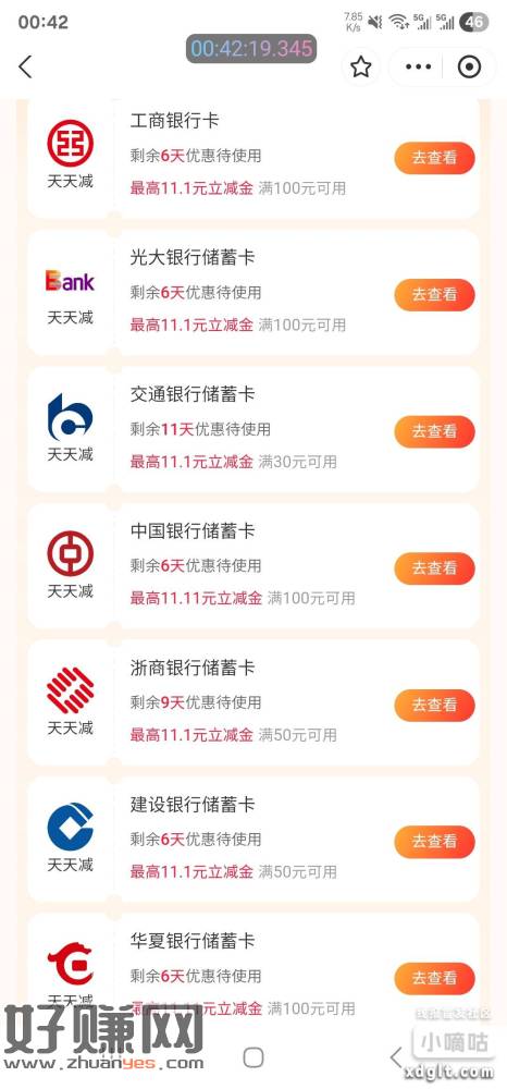 支付宝 搜银行卡天天减 银行卡更新其他卡有优惠了,银行卡多的去试试100-1 卡多利润一天也有 8 块 10块的 大小号收付款有抵扣