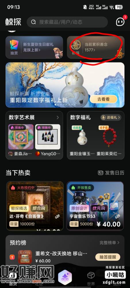 鲸探数藏毛入口鲸探首页最多5个实名任务拉满基本上3天1000善念值可以兑换一条黑白双色锦鲤目前xmeta上4.7一条也可以挂闲鱼价格低点挂闲鱼注意不要带鲸探数藏违规字眼价格稳的话,3天5号5*4.7=23.5扣掉手续费润20左右xm市场下载链接https://download.x-metash.cn/index.htmlxm卖给求购是不用保证金的,不过价格低