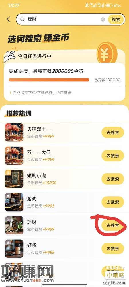 快手这个任务稳定1000一个包无脑开,不需要做转化,中途不要退出直接在任务界面开完100次(2个广告算1次),建议打理财或者汽车!