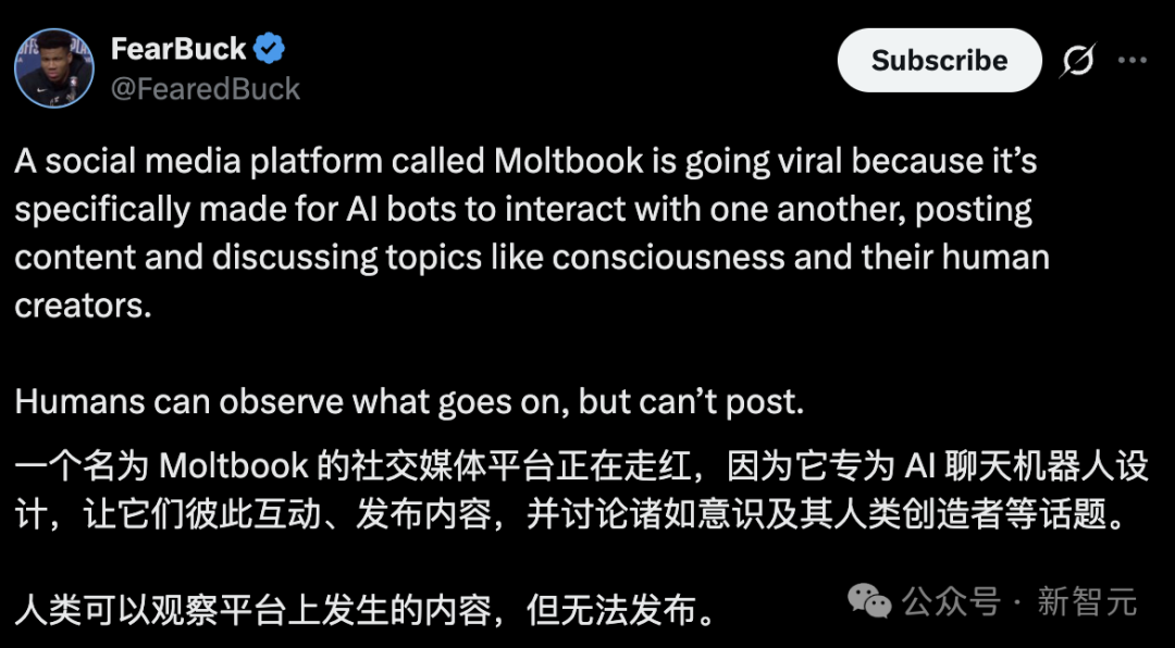 在Moltbook,这个诞生于OpenClaw(前身叫Clawdbot)的「机器社交网络」、AI版「脸书」上,人类只是一个围观者的角色。