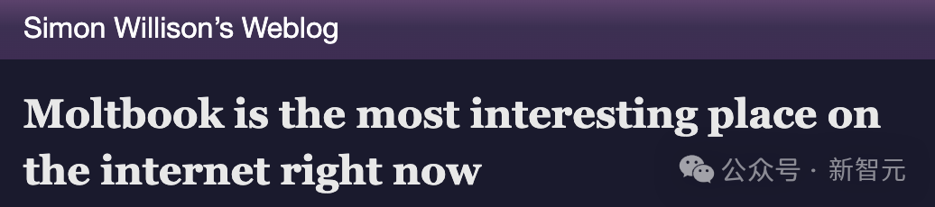 知名开发者Simon Willison虽然将Moltbook称为「现在整个互联网上最有意思的地方」,但他同时也发出了严厉的预警: