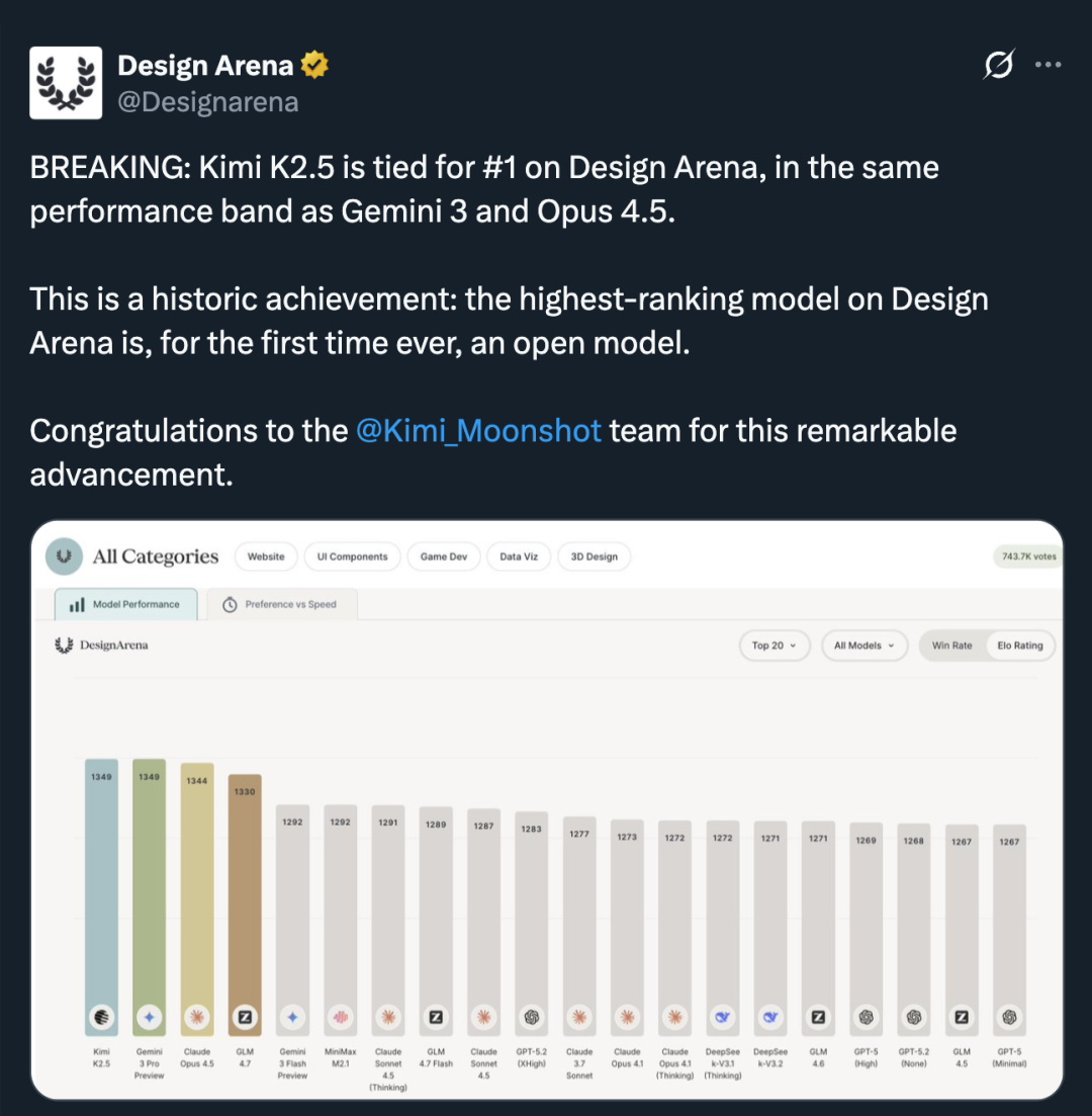最硬的背书来自权威评测平台Design Arena。