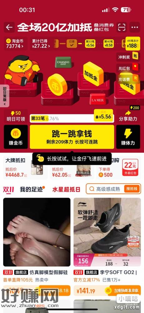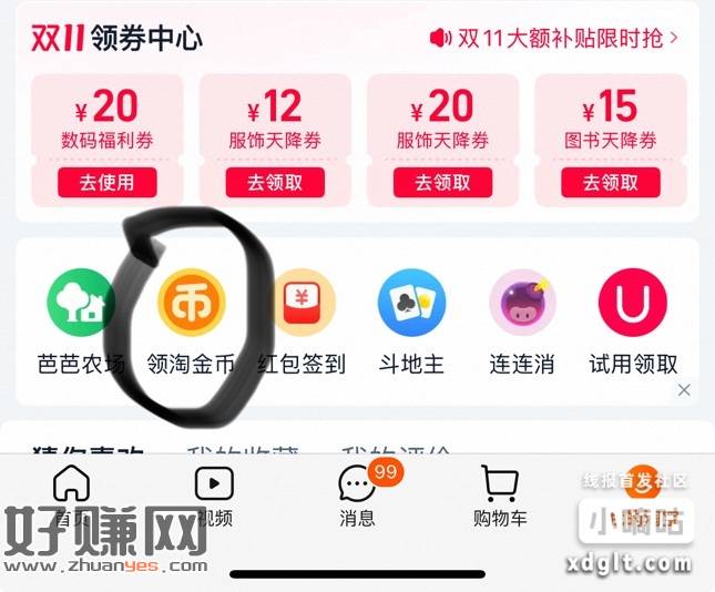 淘宝俩个小游戏换优惠券淘宝-淘金币淘宝-直播-领红包-种花