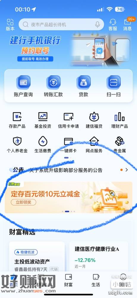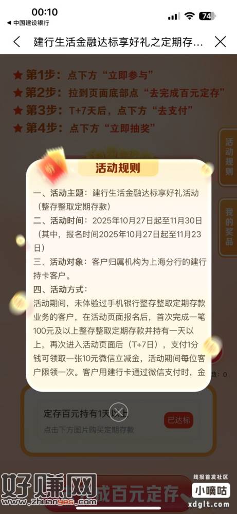 上海,建行首页横幅存100,三个月定期,然后第二天花1分钱买10块优惠券
