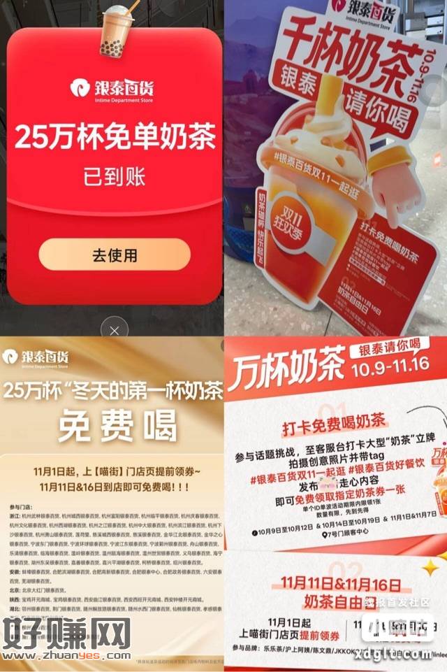银货百泰领25w份奶茶兔单 如图参与门店 感兴趣看看哈 ⏰11.1起 需先在喵街αpp领券 ⏰11.11或11.16 到店核销