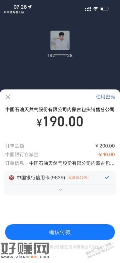 石化或者石油充值200走支付宝 -10 95折 卖挣4块吧