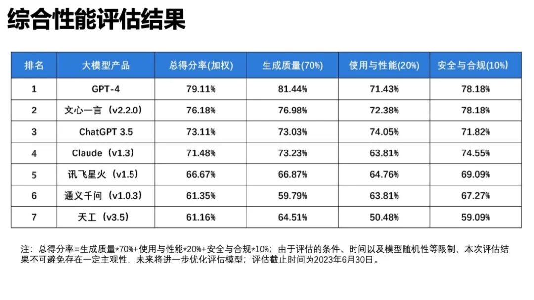 2023年8月,清华大学新闻与传播学院发布的《大语言模型综合性能评估报告》中显示,在三大维度、20项指标的综合评分中,文心一言都位列国内产品第一,部分中文能力甚至超越GPT-4。而在互联网络信息中心2024年6月的数据中显示,中国生成式人工智能产品用户规模达2.3亿人,其中文心一言的使用率为11.5%,位列第一。
