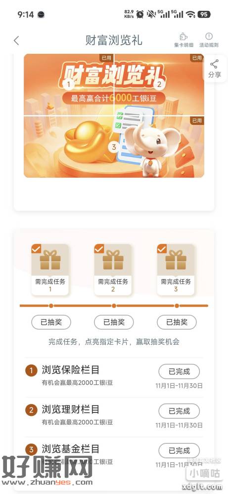 除了刚才测额 存款浏览的2个2000,下边享活动还有3个2000,一万豆去早了有晚了就没