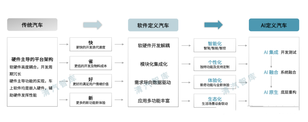 随着AI技术与智能汽车的不断融合,汽车行业正从“软件定义汽车”向“AI定义汽车”的方向演进,从过去由软件主导汽车的功能特点、系统开发和软硬件更新,逐渐发展至由AI应用为汽车的高效开发与运行提供全方位支持。