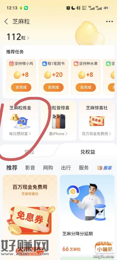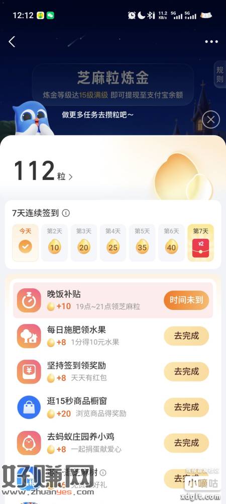 支付宝,芝麻粒现在有点用了,可以炼黄金提现,另外有个签到任务7天2红包