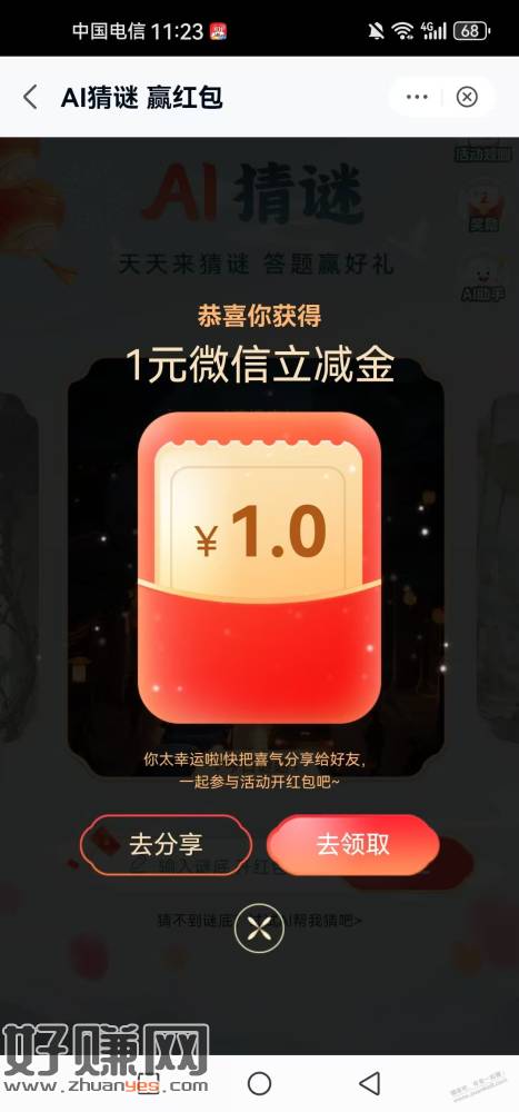 移动云盘app,我的,中间的活动中心,下拉到猜灯赢红包进去,答题