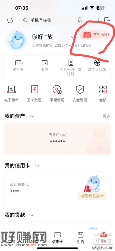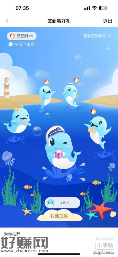 大连银行签到五天签到可以抽一次奖,全靠上天眷顾。大连银行其他福利啥玩意没有就这个,也蛮好的。