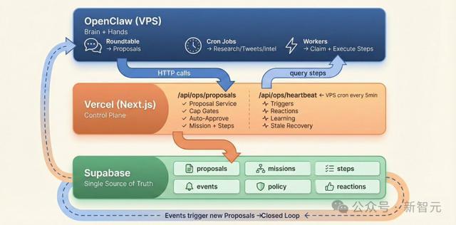 Supabase:所有状态的唯一真相来源(提案、任务、事件、记忆)