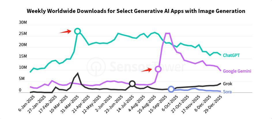 相比「闷声发大财」的AI Coding,多模态才是AI接近普通人的破圈手段,去年ChatGPT和Gemini的两次「翻倍级」增长,一个是因为GPt-4o的「吉卜力风潮」,一个是基于Nano Banana的降维打击,都是多模态在立功。