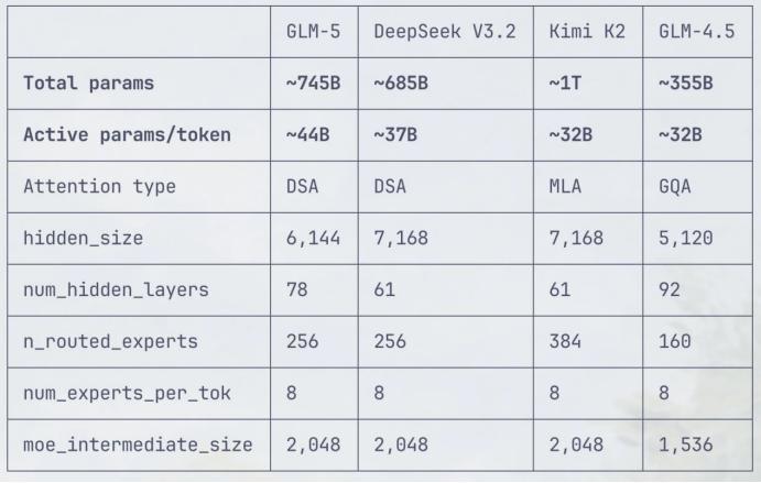 GLM-5采用“256专家+8激活”的配置,在维持更大规模参数总量的同时,单次推理只需调用约3%的参数,对计算成本和响应延迟都实现了有效控制。