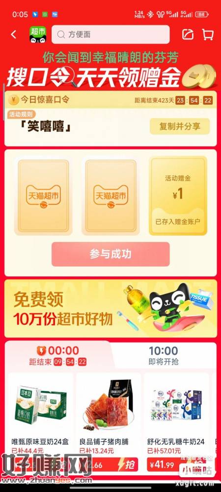 首页天猫超市 搜 笑嘻嘻1-5 0.1是手慢没水 不中是黑号