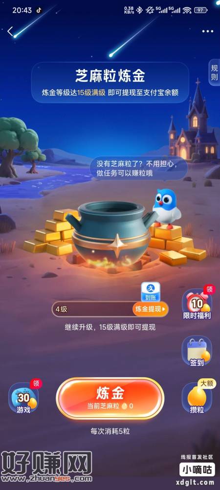 zfb芝麻粒多的可以去练金,15级提现9块大毛