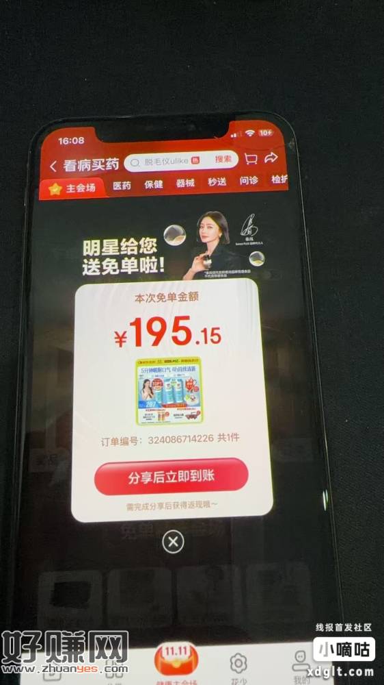 京东搜健康买单,买5单得5次抽奖机会,收到钱后退单就行