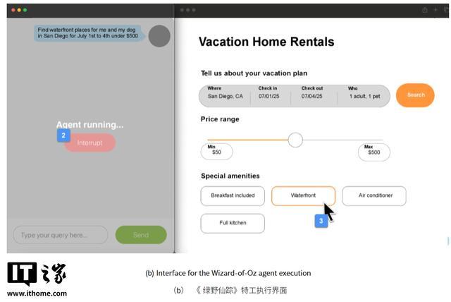 研究的第二阶段采用了经典的“绿野仙踪法”(Wizard of Oz)。团队招募了 20 名具有 AI 使用经验的用户,要求其通过聊天界面完成度假租赁或在线购物任务。