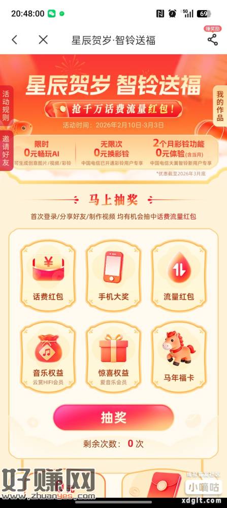 中国电信抽话费红包单次满2元及以上可领取https://ai.imusic.cn/h5v/fusion/ ... 11f7856d33bb552acce