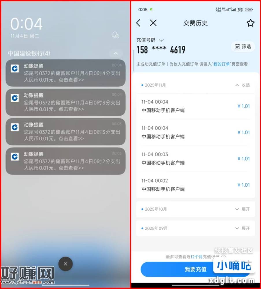 这个月没玩的,刷新了中国移动自定义充话费1.01支付方式选云闪付跳建行生活可以冲四次 0.04充4联通可能也行